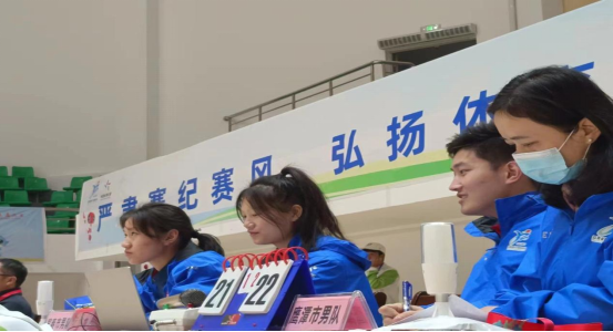 比赛期间,11名学生分别担任了记录员、辅助记录员、电记员、广播员、司线员等,帮助第一裁判和第二裁判员及替补裁判员完成辅助工作。虽然工作任务艰巨,每天凌晨六点多起床,晚上十点钟才能回到宿舍,赛场上的温度高温与寒冷交替,志愿者们或汗流浃背或瑟瑟发抖,但他们毫无怨言、以高标准严要求,尽职尽责地完成自己的本职工作。