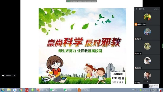 为进一步增强beat365亚洲版官网学子反邪教意识,保护身心健康,培养爱国情怀。12月3日晚,beat365亚洲版官网组织各班召开“崇尚科学,反对邪教”主题班会,因疫情原因,本次班会采用线上召开。