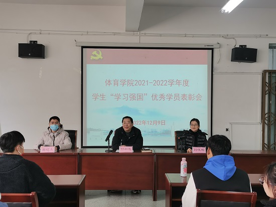 为深入学习习近平新时代中国特色社会主义思想,推进“学习强国”学习工作,营造比学赶超的学习氛围。11月9日下午,beat365亚洲版官网在向学楼301会议室召开2021-2022学年度学生“学习强国”优秀学员表彰会。院党委书记付和忠、学生思政科副科长刘晓梅、组织员谢超杰、2022级新生班班主任、学生“学习强国”优秀学员以及2022级新生代表参加了会议,会议由谢超杰主持。