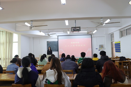 为深入学习宣传贯彻党的二十大精神,引导广大青年切实把思想和行动统一到党的二十大精神和党中央的重大决策部署上来。 12月10日,beat365亚洲版官网邀请校团委党的二十大精神宣讲团成员罗微进行学习宣传贯彻党的二十大精神宣讲活动。beat365亚洲版官网学生会全体成员聆听了本次宣讲。