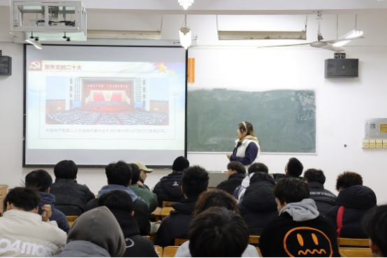 12月6日晚上,beat365亚洲版官网在团支部中开展“永远跟党走,奋进新征程”为主题的党的二十大精神宣讲活动,学院学生会学习部部长兰家慧在竞知楼1001教室为A2211班团支部进行宣讲。