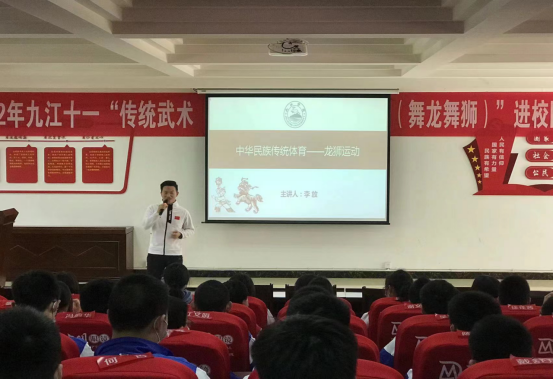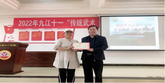 5月13日,beat365亚洲版官网高辛琳、李放两位教师受邀参加2022年九江市第十一中学“传统武术(舞龙舞狮)进校园”活动。本次活动在九江市第十一中学多媒体报告厅举行,会上九江市十一中负责人分别为两位教师颁发传统体育进校园活动聘书。