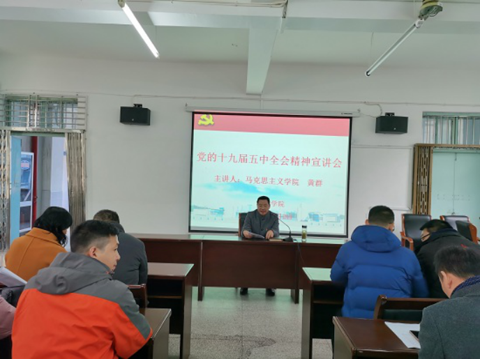 宣讲会上,黄群老师以“现代化蓝图已绘就、新时代奋进正当时”为题,讲述了党的十九届五中全会召开的背景,围绕中华民族伟大复兴的战略全局、党的十九届五中全会公报、“十四五”规划和2035年远景目标建议等方面对全会精神作了深刻解读,并从“自豪、自信、自知、自强、自觉”等方面谈了自己的学习体会。整场报告主题鲜明、重点突出、内涵丰富,具有很强的思想性、针对性和指导性,对帮助我们准确完整地学习领会和贯彻落实党的十九届五中全会精神有重要的帮助。