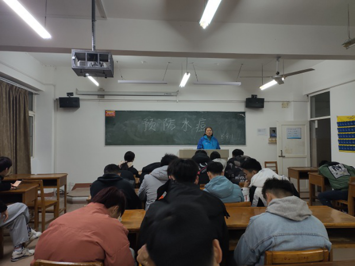 班会上,各班班主任带领着学生进行了具体的防火和水痘预防的学习,并督促同学们应注意教室寝室卫生消毒,在平时要做到勤洗手多喝水、勤开窗通风,合理膳食加强体质,在离开寝室或教室时要做到及时断电。