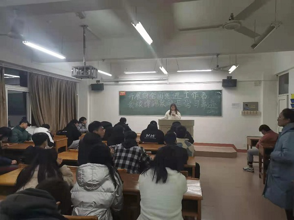 会上,曹钧老师带领我们学习了谭翊泉同志扶贫的先进事迹并观看了团中央宣传部推出的《青年的力量》视频。随后,曹钧老师围绕“如何深入学习谭翊泉同志的吃苦奉献精神”主题引导全体学生干部进行学习讨论,进一步了解了他的的先进事迹,深化了学习效果。最后,由曹钧老师对讨论会的内容进行总结发言。通过学习,同学们纷纷表示,要认真学习谭老师的吃苦耐劳,勇于奉献精神。