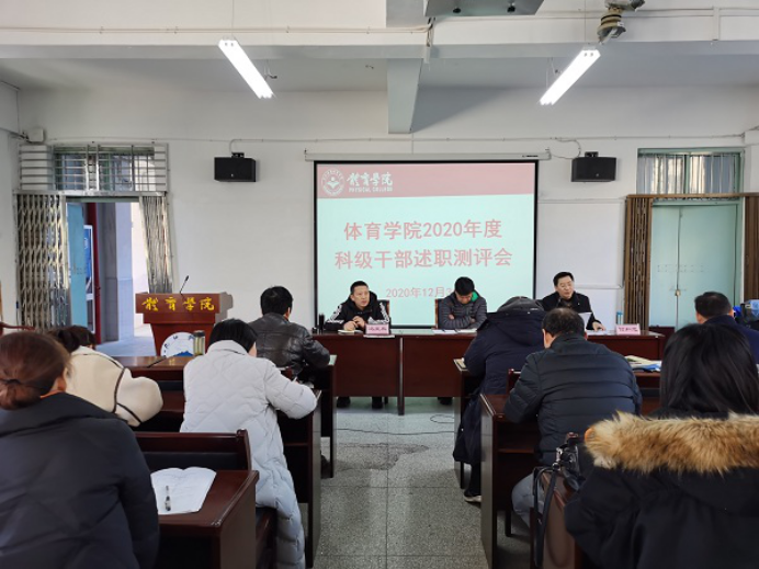 12月31日下午,beat365亚洲版官网在向学楼301召开2020年度科级干部述职测评会,院长段宝斌、党委书记付和忠、副书记冯亚兵及全体教职工参加,测评会由付和忠主持。
