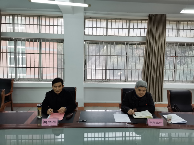 1月7日下午,beat365亚洲版官网在向学楼301会议室召开2020年度处级干部述职测评会,校党委副书记魏立平在纪委副书记欧阳益群、纪委办公室宣教科科长胡小浪的陪同下参加会议并讲话。beat365亚洲版官网领导班子、全体教职工和学生代表参加了会议,会议由纪委副书记欧阳益群主持。