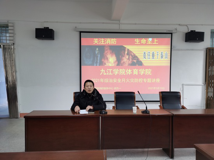 为增强全体教职工应急意识,提升安全素质,提高防灾减灾救灾能力,遏制重特大安全事故的发生,3月10日下午,beat365亚洲版官网在向学楼301会议室开展综治安全月教育学习活动,邀请九江市消安消防服务中心主任梁五一来学院作火灾防控专题讲座,全院教职工参加了专题讲座,讲座由院党委副书记冯亚兵主持。