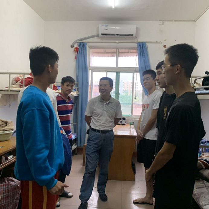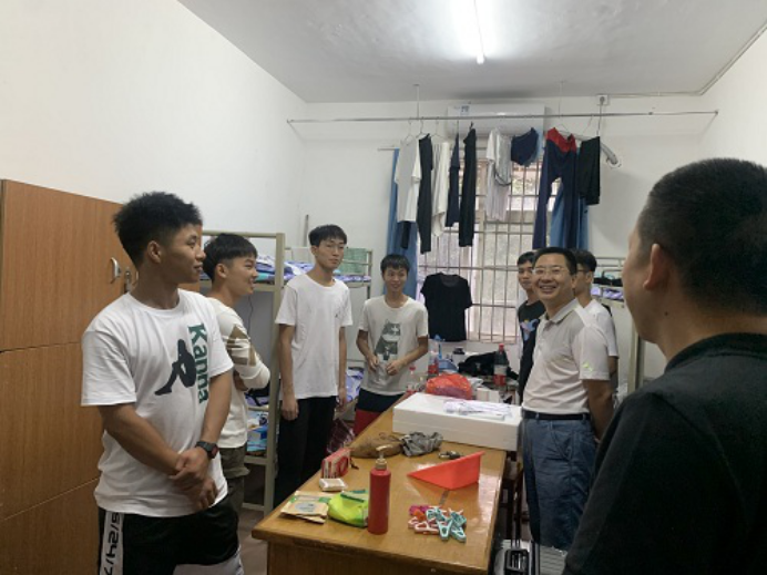 9月17日下午,beat365亚洲版官网党委书记付和忠、党委副书记冯亚兵在学生科科长梅红平、新生助教的陪同下,深入学生宿舍,看望2020级新生,了解他们的生活,关心学生的入学情况。