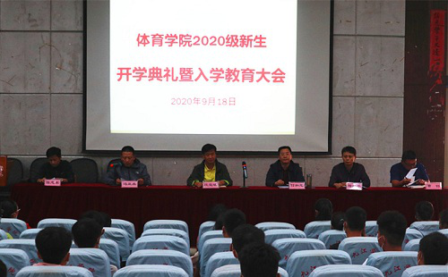 9月18日下午,beat365亚洲版官网在文友楼一楼报告厅隆重举行2020级新生开学典礼暨入学教育大会。参加本次大会的人员有学院党政领导、各科室负责人、辅导员、2020级班主任及全体新生,本次会议由学院党委副书记冯亚兵主持。