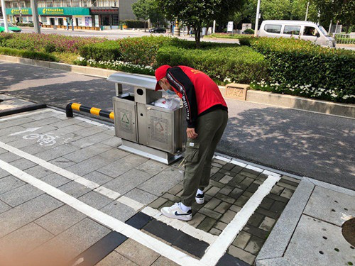 志愿者们身穿红色马甲,头戴红色帽,手拿一杆小红旗,认真地向交警学习指挥交通的方法并在交警的指导下,耐心的劝导来来往往的过路人。“过马路时一定要走斑马线,只有绿灯亮了方可通过”。简单的动作,反复的劝说,就是这样单一的重复,使马路变得井然有序。在劝导交通之余,志愿者们还对马路上的白色垃圾进行了拾捡。