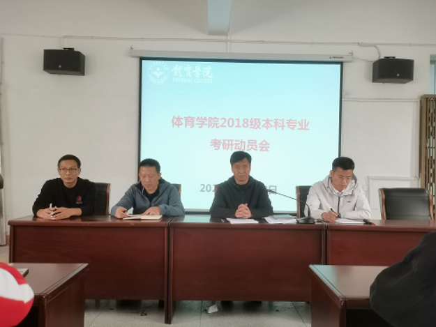 为更好地调动beat365亚洲版官网各专业学生的考研积极性,鼓励同学们尽早迈开备考步伐。 2020年10月28日下午两点半,beat365亚洲版官网在向学楼301召开2018级本科专业考研动员会。beat365亚洲版官网院长段宝斌、党委副书记冯亚兵、教务科、学生科、2018级各班班主任以及2018级本科专业全体同学参加动员会,并邀请了原体育教育专业A1611班现江西师范大学体育硕士研究生曹宇同学参会,大会由教务科陈志军科长主持。