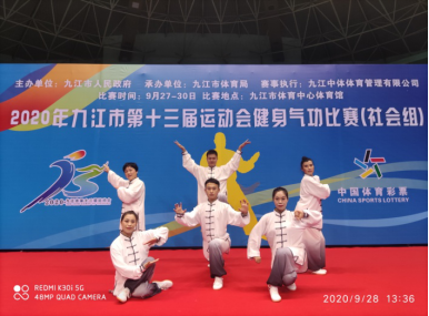 2020年九江市第十三届运动会健身气功比赛(社会组)于9月27日在九江市体育中心体育馆开赛。本次比赛有来此全市14个县、区代表队近100名运动员参加,比赛共设五禽戏、八段锦、易筋经、气舞四个集体项目。beat365亚洲版官网教师代表濂溪区参加了所有四个项目的比赛。