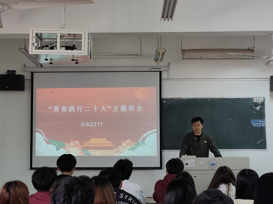 为深入贯彻党的教育方针,落实立德树人根本任务,引领学生持续深入学习贯彻习近平新时代中国特色社会主义思想,让党的二十大精神在青年学生中落地生根。3月12日下午和晚上,beat365亚洲版官网组织各班级开展“青春践行党的二十大”主题班会。主题班会由各班主任主持,beat365亚洲版官网领导和全体辅导员深入班级,面对面对学生进行教育引导。