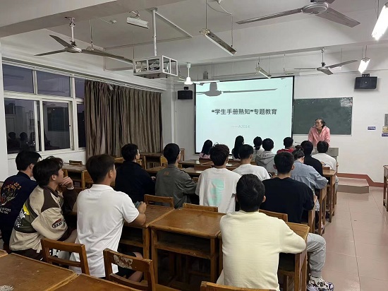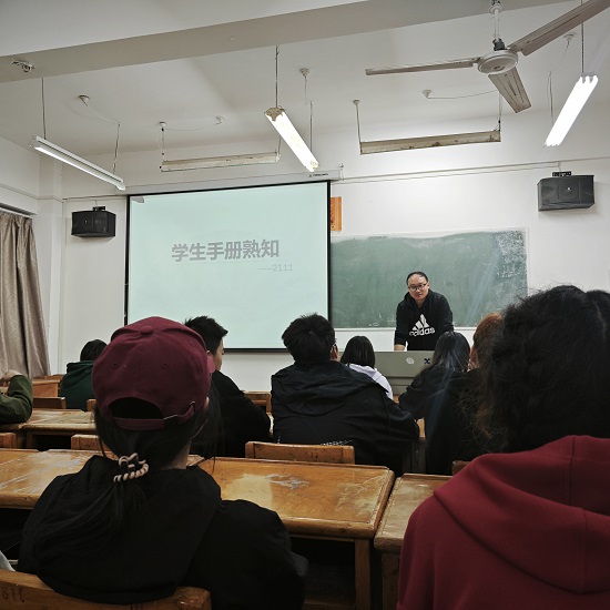 活动过程中,各班班主任老师带领本班同学们学习《学生手册》,详细地讲解beat365亚洲版官网学生管理办法各项制度和规定,明确了学生的权利和义务,也耐心地就学生们较为关切的关于奖惩制度、学籍预警、试读、退学等方面问题进行了答疑解惑。