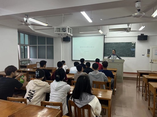 活动中,班主任老师们组织大家观看了《又双叒叕在高校,发生火灾!》消防安全警示的教育片,提醒同学们在宿舍中容易产生消防安全的物品和行为,向同学们介绍在学生宿舍中防火、逃生、警报等消防安全技能,如何掌握自救和互救的能力。