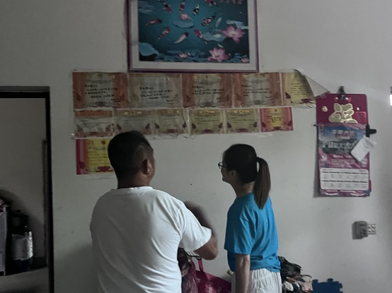 到达金盘村后,志愿者们首先来到村里开展走访调研,为了解群众的实际情况,坚持到群众中去、到实践中去,通过与村民们的交谈了解到,当前农村的人口结构现状、教育资源、产业结构及对医疗政策了解等方面存在的问题,让接下来能够更好地提升本次志愿服务质量奠定了基础。