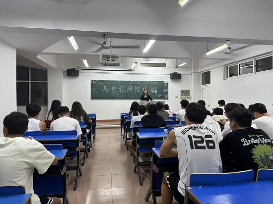 为开展好新学期校园安全教育“第一课”,加强法制宣传教育,进一步提高学生安全防范意识和能力。9月3日晚,beat365亚洲版官网组织各班召开“反电信网络诈骗”主题班会。