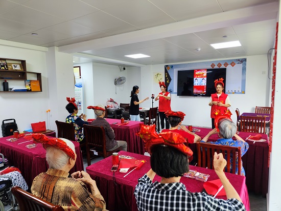 在活动中,志愿者们为爷爷奶奶们表演歌舞、小品、太极拳等文艺联欢节目,与他们一起做互动游戏和手工制作。活动结束后志愿者们分别陪伴老人们唠家常、剪指甲,打扫卫生,志愿者们贴心且周全的照顾受到爷爷奶奶们的一致赞扬,整个敬老院围绕着爱的暖流,场面温馨感人。