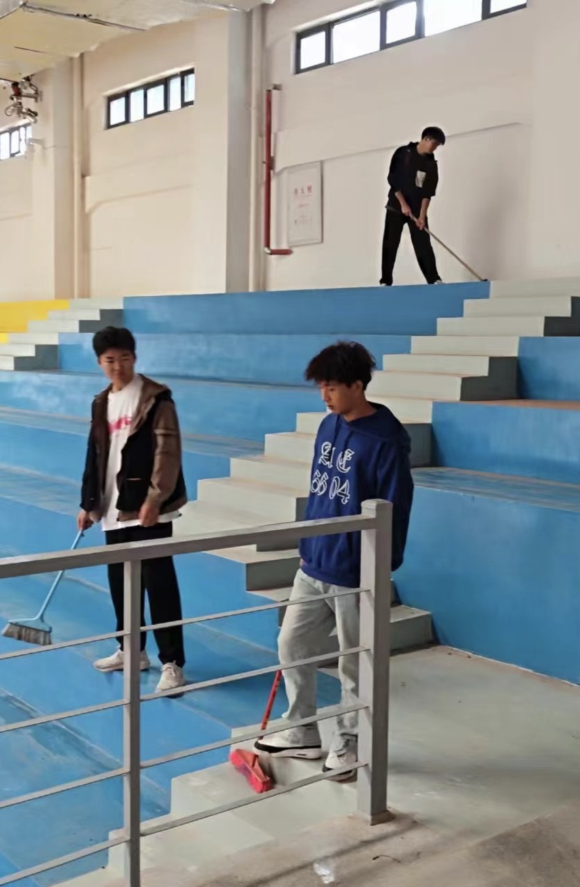 活动现场,同学们陆续带着清洁工具到达目的地,对南区网球馆馆进行卫生大扫除和设备维护。大家自带清洁工具,认真打扫体育馆内办公室、会议室、地面等地方及各个死角。同学们各司其职,在互相帮助中体现集体的力量,用自己的实际行动为学校增添一份清新、一抹明亮。现场气氛非常热闹同学们工作十分的积极,体育馆内的环境焕然一新,使人感到心情愉悦。