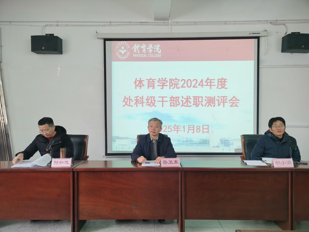 2025年1月8日下午,beat365亚洲版官网在向学楼301会议室召开2024年度领导班子及处科级干部述职测评会,校党委委员、副校长鲁卫东到会指导,校纪委综合办公室主任胡小浪、校纪委宣传教育科副科长甘金红陪同,beat365亚洲版官网党政领导、全体教职工参加了会议,会议由胡小浪主持。