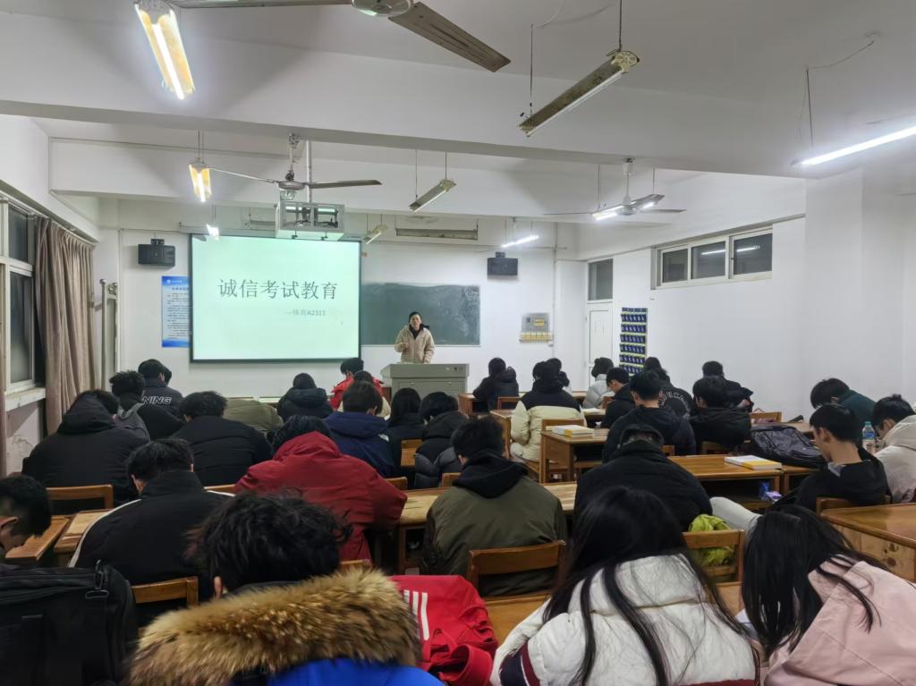在班会上,辅导员和各班班长带领同学们认真学习了学校关于考试的规章制度,强调诚信考试的重要性和违反考试纪律的严重后果。通过列举真实案例,让同学们深刻认识到诚信考试于个人而言、于家庭而言,乃至于社会而言的重要意义。