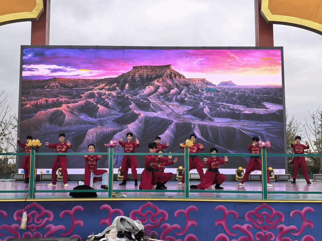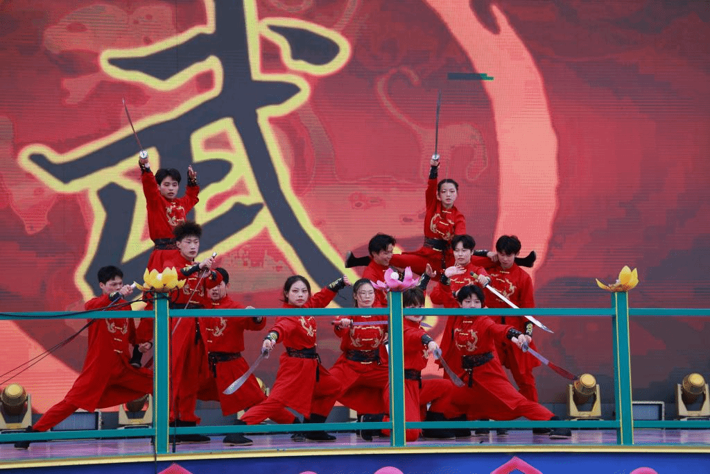 此次表演中,武术队展示了鞭术、拳术、刀术、剑术等多种武术套路。队员们动作精准有力,技巧娴熟,将武术的力与美完美呈现,赢得了现场观众的热烈掌声与喝彩。