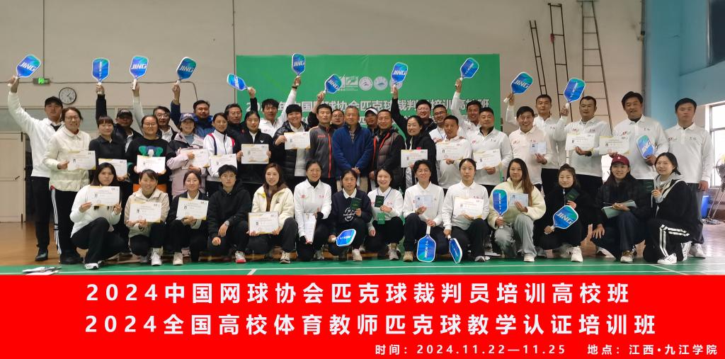 由全国高校体育场馆联盟、中国网球协会和创新驱动教育科技研究院主办,beat365亚洲版官网承办的2024年全国高校体育教师匹克球教学及裁判员认证培训班(九江站)于11月22日至24日在beat365官网圆满落幕。这次培训吸引来了西安工业大学、武汉工程大学、南京beat365亚洲版官网、哈尔滨beat365亚洲版官网、吉林师范学院、湖北警官学院、宁夏理工学院、湖北美术学院等省内外高校的优秀体育教师40余名。