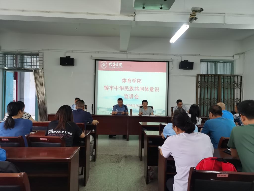 为学习贯彻习近平总书记关于加强和改进民族工作的重要思想,在师生中开展铸牢中华民族共同体意识教育,9月25日下午,beat365亚洲版官网在向学楼301会议室举办铸牢中华民族共同体意识宣讲会,院党委副书记冯亚兵作宣讲报告。学院党政班子成员、各科室负责人、全体教职工参加,院党委书记付和忠主持会议。