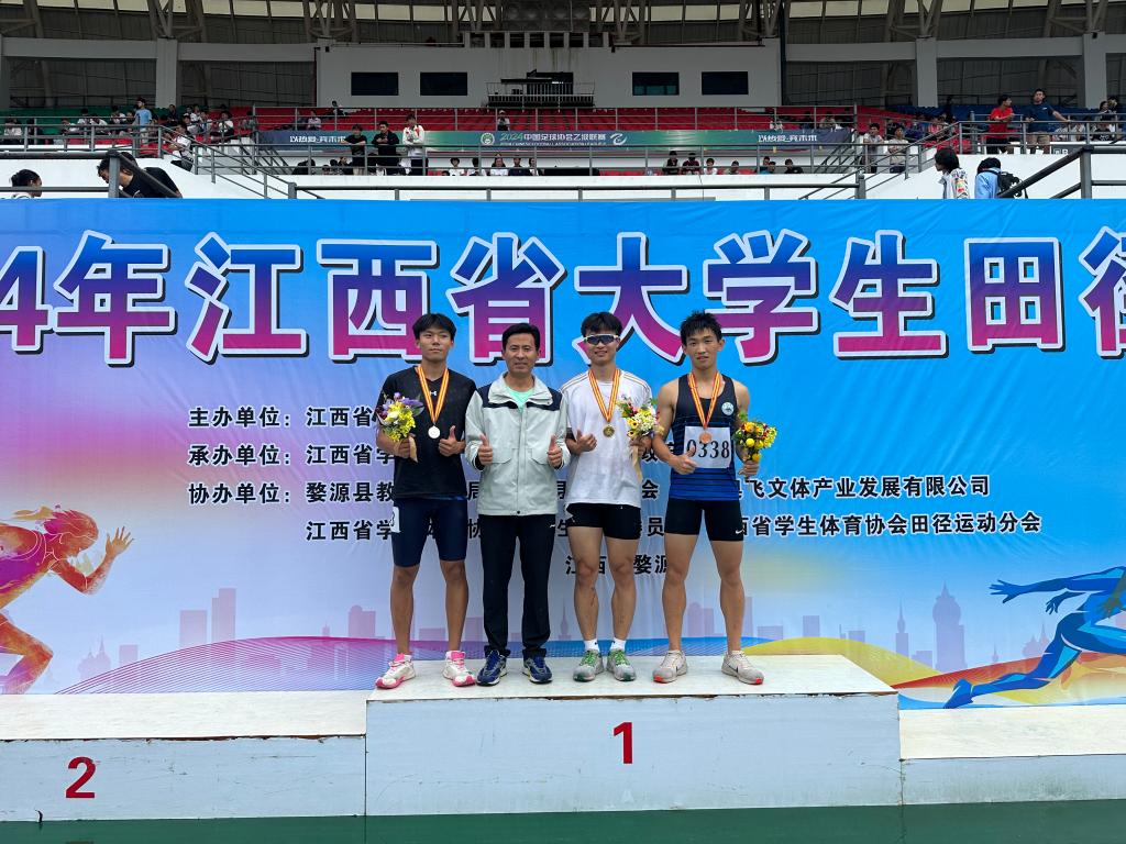 2024年6月28日,为期一周的江西省大学生田径锦标赛在婺源体育中心落下帷幕,beat365官网派出了由18名运动员和2名教练员组成的20人代表队参加了此次比赛。由于天气原因,此次比赛几乎全程在大雨中进行,beat365官网运动健儿们不畏艰辛,不仅在场上展现了昂扬向上的运动风采,更彰显了积极进取和团结奋进的体育精神。建工学院林文震同学在瓢泼大雨中,以1.85米的成绩夺得了男子甲组跳高比赛银牌,同时获得男子甲组跳远第五名。建工学院的杨振乾同学以52.98秒的成绩夺得了男子甲组400米铜牌,曹锦辉同学在100米比赛中以10秒87获得乙组第三名,朱清涛同学获得男子乙组跳远第八名。