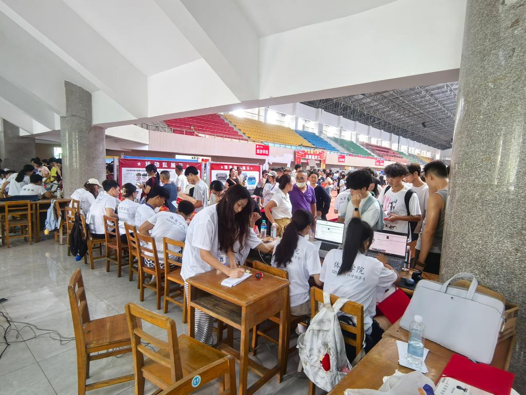 在报到现场,还设置了特色展示区,展示学院的发展历程、师资力量、各运动队、教学成果及赛事获奖等,让新生和家长对学院有更全面的了解。