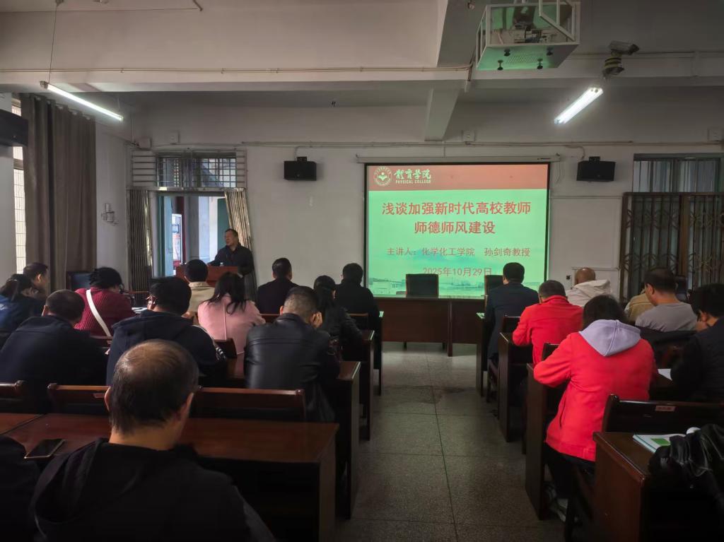 为深化新时代高校教师师德师风建设,强化育人使命担当,10月29日下午,beat365亚洲版官网在向学楼301会议室举行2025年度师德师风宣讲报告会,特邀beat365亚洲版官网师德师风宣讲团成员、化学化工学院孙剑奇教授作宣讲报告。学院领导、全体教职工和学生代表参加报告会,报告会由院党委书记付和忠主持。