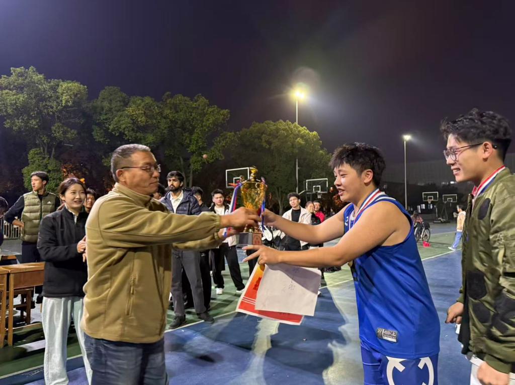 赛后颁奖仪式上,篮球教练王先锋老师为冠军队颁发奖杯证书,并肯定了两支队伍的表现。双方队员握手拥抱、相互鼓励,充分践行“友谊第一,比赛第二”的体育精神。