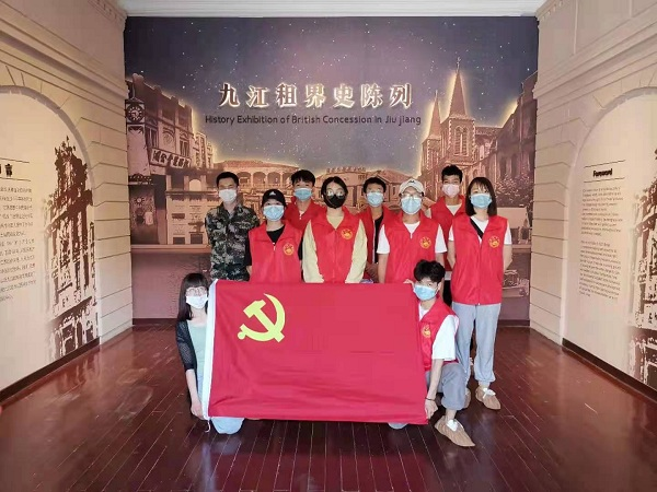 为庆祝建党100周年,追寻红色印记,让红色基因、革命薪火代代传承,5月8日下午,beat365亚洲版官网组织学生党员来到浔阳区湓浦社区,和社区退役军人党员一起前往九江租界博物馆,开展“学党史、强党性、跟党走”党史学习教育,传承红色基因、牢记初心使命。