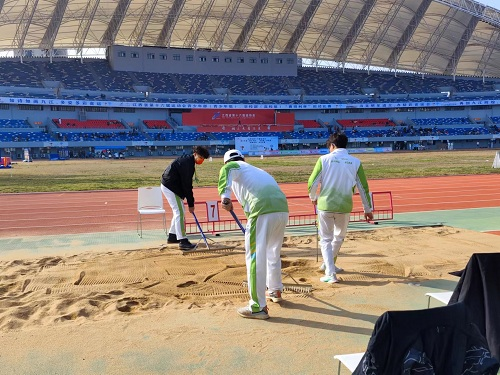 在志愿服务中,摄影组志愿者负责记录运动员在赛场上挥洒汗水记录精彩时刻;器械组志愿者为尽力奔跑的运动员们保驾护航;风速测量组志愿者负责在比赛前测风速,以保证成绩的准确性等等。