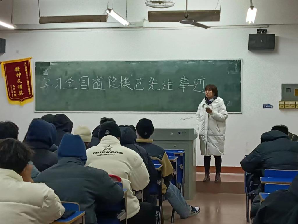 班会上,各班组织同学们认真学习了全国道德模范的感人事迹。一位位道德榜样、一件件模范事迹深深印在同学们心中,同学们纷纷感叹道:学习了全国道德模范事迹,我们要向道德模范学习,要常思己过,重责任、讲奉献、怀感恩,发扬义不容辞、勇于担当的道义,让自己的人生更纯正,让自己对社会更有益!