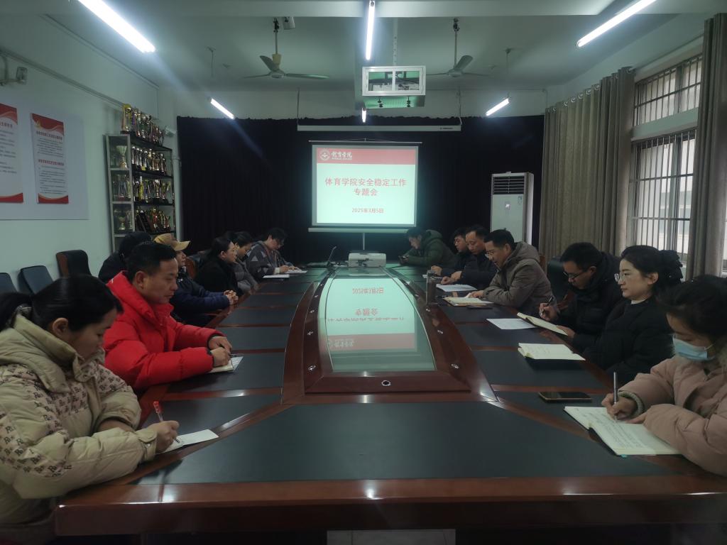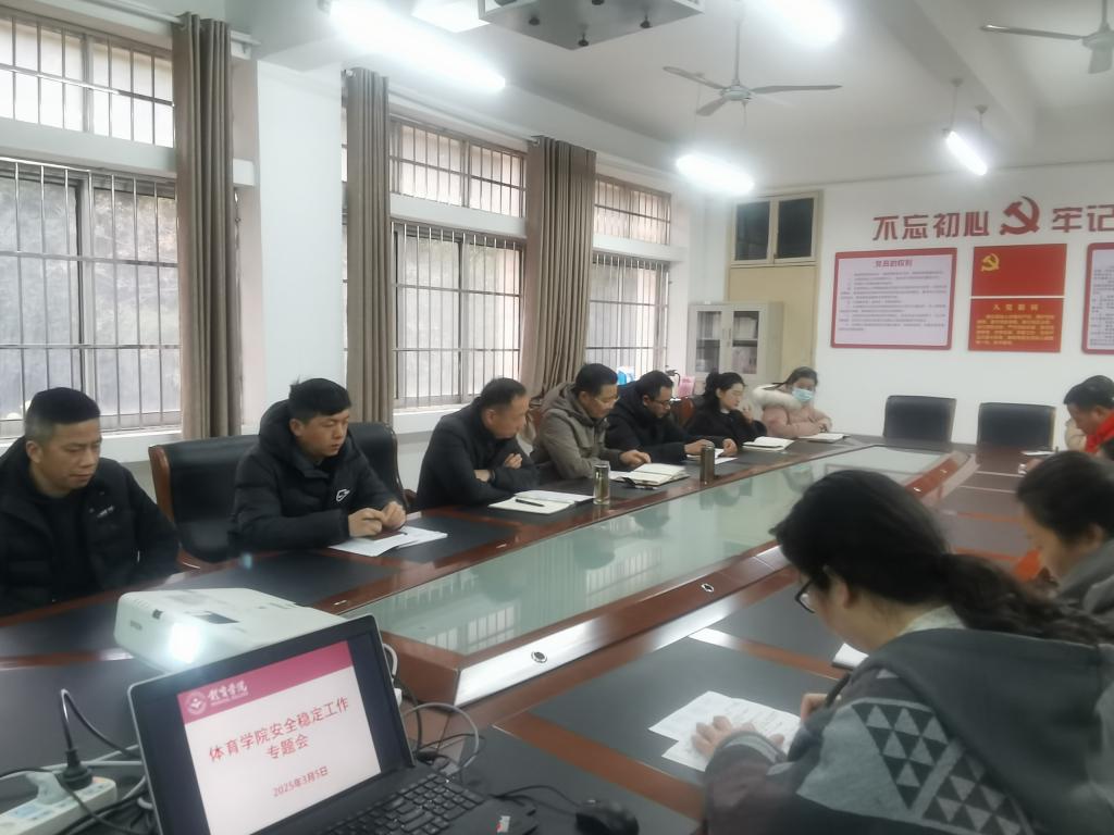 付和忠传达学习了学校2025年第一季度安全稳定工作会精神,分析了学院近期安全稳定工作情况,就学院安全稳定工作和平安建设主题宣传月活动进行部署。副院长宋涛就课堂安全、训练安全、场馆安全、实验安全等工作做了强调。