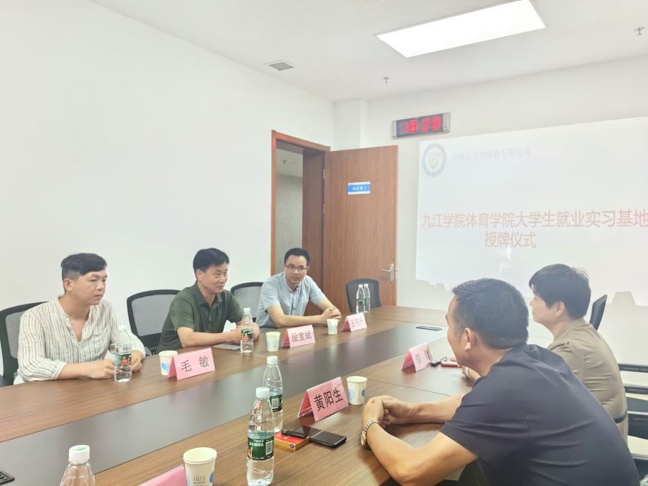 beat365亚洲版官网通过前期对永修县宏尚体育有限公司的调研与了解,经学院领导同意,于2024年5月29日下午,beat365亚洲版官网院长段宝斌、beat365亚洲版官网副院长王东升、beat365亚洲版官网社体教研室主任毛敏一起到访宏尚体育有限公司,参加实践教学基地的签约与授牌会议。