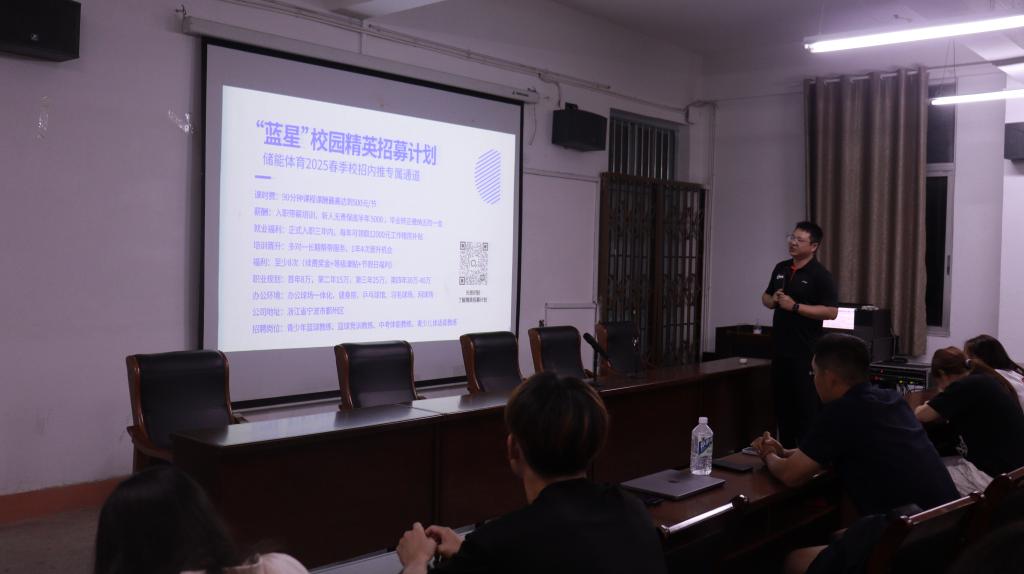 为进一步拓宽学生就业渠道,深化校企合作,助力体育专业人才高质量就业。5月14日晚,beat365亚洲版官网持续开展招聘就业宣讲会暨企业专场校园招聘会,本次宣讲会邀请到浙江省宁波储能体育有限公司。beat365亚洲版官网2025届毕业生以及2022级、2023级学生代表参加宣讲会。