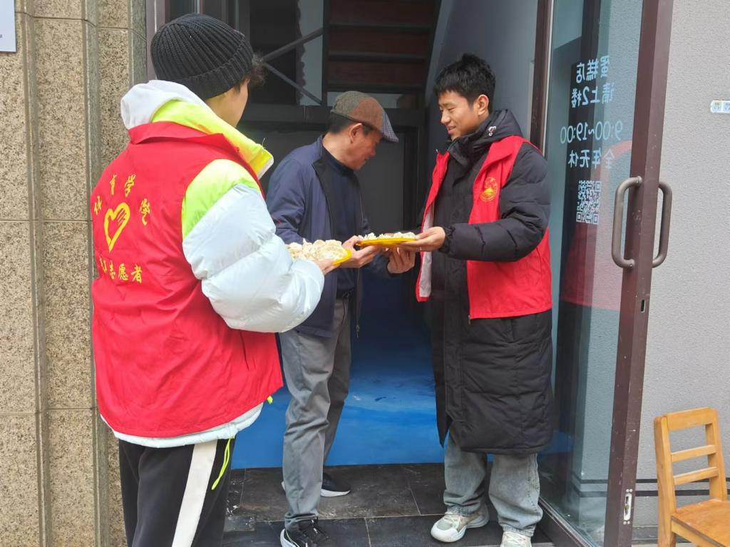 活动当日,同学们早早抵达社区,筹备好包饺子所需的各类食材与工具,不多时一盘盘形态各异的饺子如艺术佳作,错落有致地摆满了桌面。同学们们将煮好的饺子一一送至社区孤寡老人与困难家庭手中。老人们接过那热气腾腾的饺子,脸上绽放出幸福的笑容,口中不住地感谢志愿者们的贴心关怀与无私奉献。